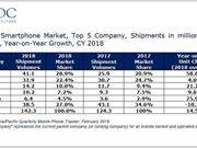 IDC近日发布2018年印度手机市场调查报告,数据显示,2018年印度手机市场出货量创新高,达到1.423亿台。与2017年相比同比增长14.5%。2018第三季度印度手机市场在经历一波爆发后,由于渠道库存过高,智