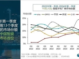 5月26日,Canalys最新的市场报告显示,中国大陆智能手机市场在经历了两年的下滑后,在2024年第一季度实现了回升。尽管出货量与去年同期持平,但达6770万台。荣耀以1060万台的出货量排名第三,同比增长9%;vivo紧随其后,出货量达到1030万台,但同比下滑9%;苹果在这个季度中跌幅最大,在头部厂商中以1000万台的出货量排名第五,同比下降25%。