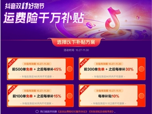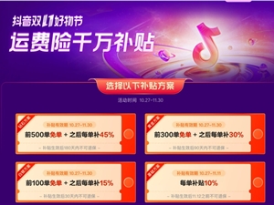抖音双11推运费险千万补贴计划 新商家最高前500单免单
