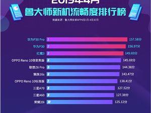 4 月新机中,华为 P30 Pro 成为了最流畅的手机,手机 UI 流畅度评测均分高达 157.58 分,搭载同一系统的 P30 排在第二,均分 156.97 分。