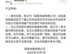 国美电器收到破产清算申请 申请人主张追讨货款470.6万元