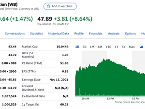 微博第三季度营收6.07亿美元超预期 股价盘前上涨逾8%