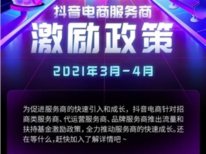 为了帮助服务商快速成长,近日,抖音电商针对招商类服务商、代运营服务商、品牌服务商推出流量和扶持基金激励政策。在2021年3月1日0时到2021年4月30日24时期间入驻的商家可以获得丰厚的现金奖励和流量扶持。
