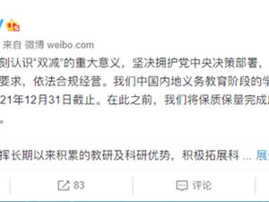 好未来通过其官方微博发布声明:中国内地义务教育阶段的学科类校外培训服务将于2021年12月31日截止,将积极拓展科技服务和素质教育等业务。