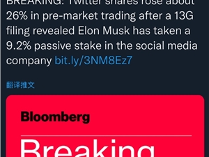 马斯克入股推特成为第一大股东:股占比达9.2%