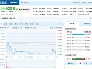 12月2日,网易云音乐今日正式登陆港交所,证券代码为9899”。首日平开,即发行价为205港元,开盘价也是205港元,总市值425.90亿港元(约合人民币348亿元)。截止发稿,网易云音乐跌倒204港元,盘中破发。此前,5月26日,网易云音乐向香港联合证券交易委员会递交上市申请,11月23日,网易云音乐宣布启动香港首次公开发行。此次融资后,网易云音乐将募集资金共计32.8亿港元(折合人民币26.9亿元)。公开发售阶段云音乐获约8.92倍认购
