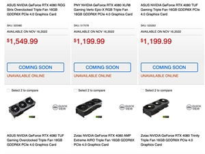 11月16日,RTX 4080就要上市了,现在海外电商平台已经陆续出现了它的身影,各家厂商定价上也不太一致。从陆续上架的情况看,RTX 4080基础型号为原价1199.99美元(约8600元人民币) ,高端型号价格达到了 1549.99美元(约11100元人民币) 。当然了,那个最贵的,显然是华硕的ROG。如果首批RTX 4080供货不给力的话,那么9499元的国行被炒到万元,那是很轻松的事情,据之前消息称,供货可能比RTX 4090当时还要少2成到4成之多。据悉,RTX 4080 16GB内建9728个CUDA,基于AD103核心,匹配的显存位宽是256bit,热设计功耗320W。至于性能,目前流?