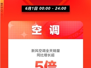 6 月 1 日零点,“京东618, 18 周年庆”正式开启,自 5 月 24 日预售开始以来,京东家电各品类便以迅雷之势极速增长。开门红首日,空调、电视、冰洗、厨电、小家电均取得重大突破,成交额到达新峰值,京东家电初战告捷为京东 618 大促打下了一个良好的开端。健康节能成空调消费新趋势,服务升级助推销量大爆发 进入 6 月,全国普遍迎来高温天气,空调作为家家户户夏季必备的刚需家电产品,每年京东618,空调销售走势都会备受瞩目