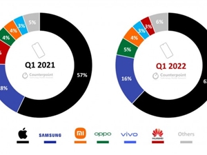 在价格超过400美元的设备中,苹果公司的iPhone占据了第一季度全球市场份额的62%,其中iPhone13系列产品推动了销售。智能手机市场表现正在下滑,但苹果在该市场中的份额依然增长。它从2021年第一季度的57%高端市场份额增长到2022年第一季度的62%。根据Counterpoint的研究,这是自2017年第一季度以来苹果的最高第一季度份额,自2021年10月以来,iPhone 13一直是全球每个月最畅销的机型。被定义为价格超过400美元的设备的整体高端智能手机市场同比与手机市场整体一样有所下降。尽管如此,该领域的重要性仍在增长,售出的智能手机中几乎有十分