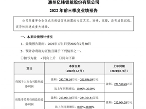 亿纬锂能发布公告称,预计前三季度净利润24.37亿元–26.59亿元,同比增长10%-20%;预计第三季度净利润10.82亿元–12.98亿元,同比增长50%-80%...亿纬锂能在公告中表示,在对参股公司思摩尔国际控股有限公司投资收益同比下降幅度较大、公司持续加大研发投入的前提下,公司2022年前三季度业绩与上年同期相比仍实现正向增长,主要原因是:...1、在上游主要材料价格急剧上涨的背景下,公司秉持和谐发展原则,适时调整产品定价机制,各产品线的盈利能力得到较好修复;...